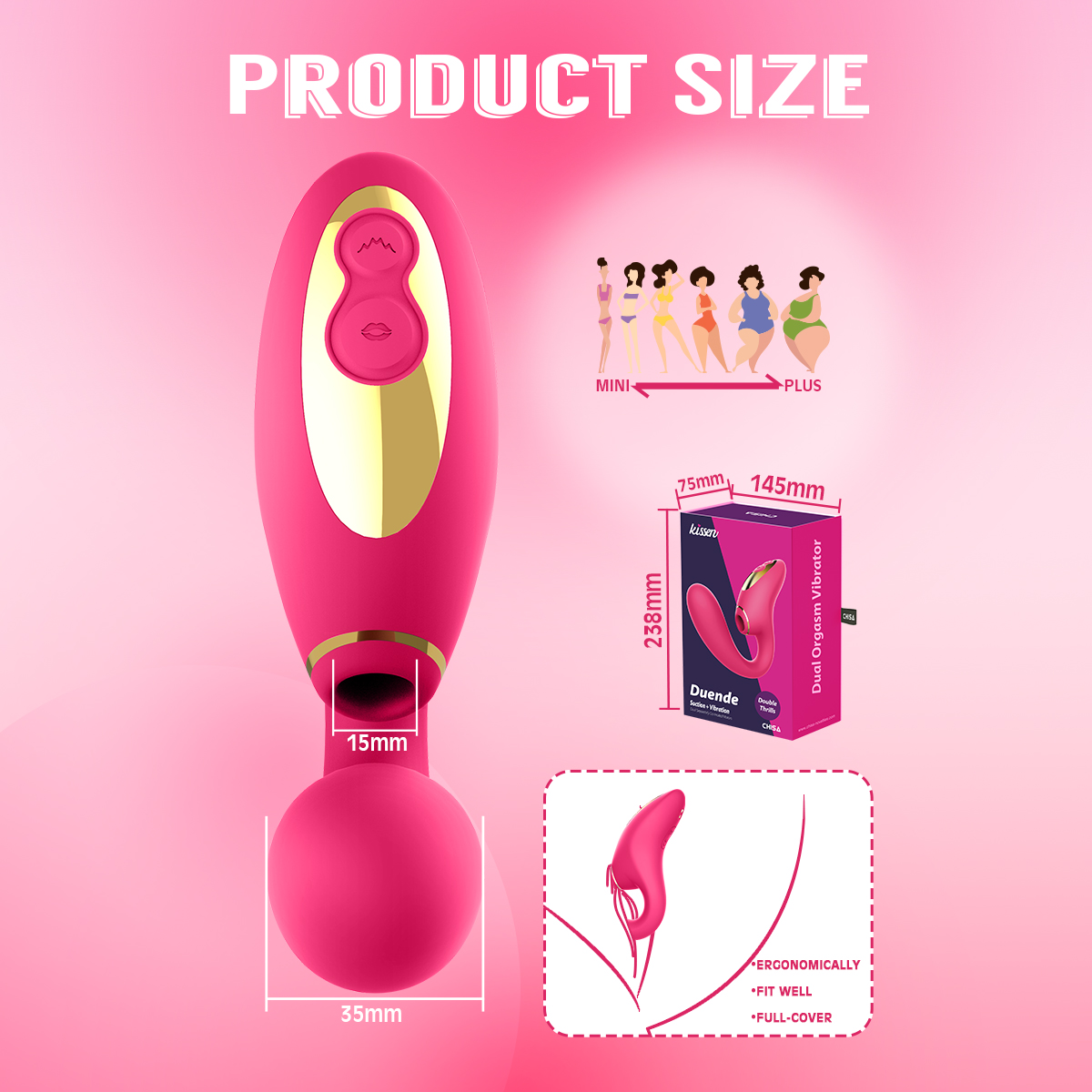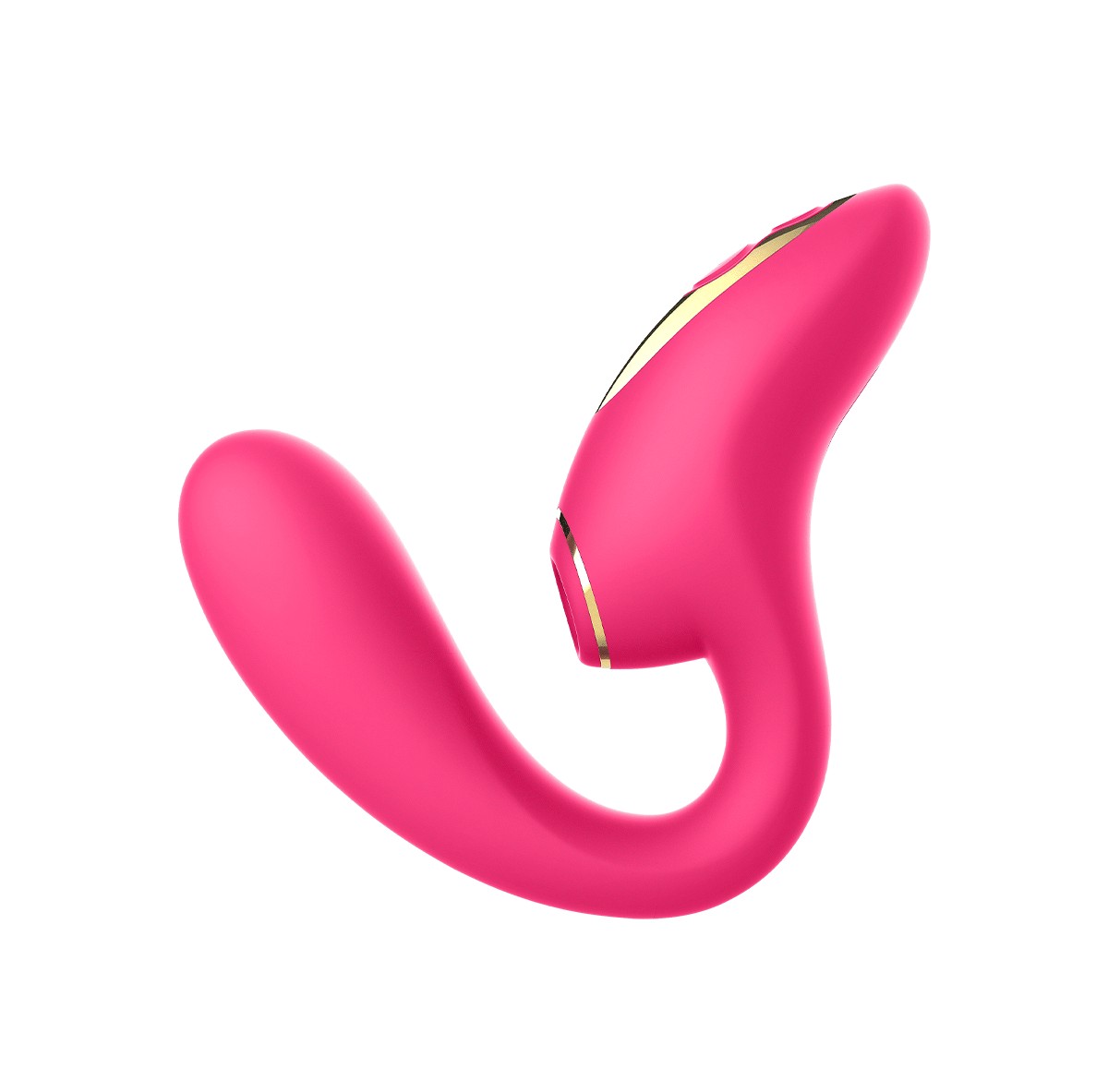 Designed to deliver blended pleasure, this dual-action stimulator combines internal vibration with targeted clitoral suction for a deeply satisfying experience. Its ergonomic shape is crafted to sit comfortably against the body, allowing both sensations to work together seamlessly.