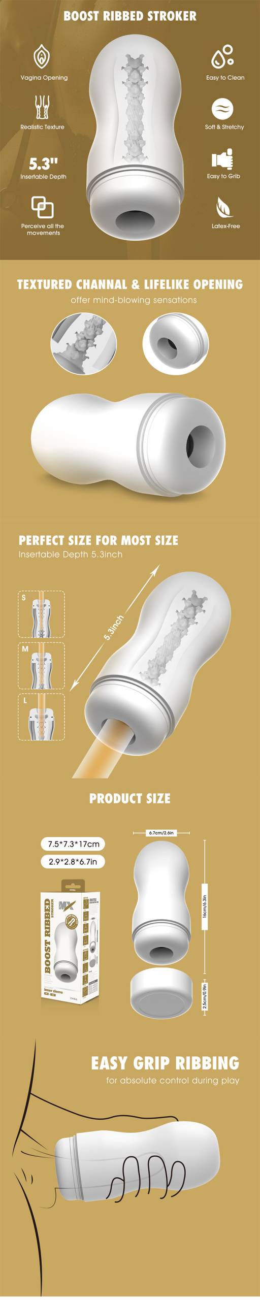 - Ribbed male masturbator stroker for enhanced sensation