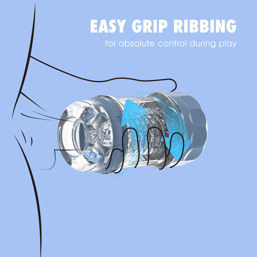 - Spiral-textured male masturbator cup