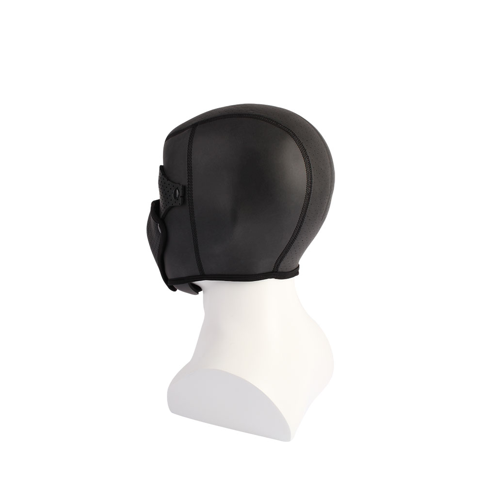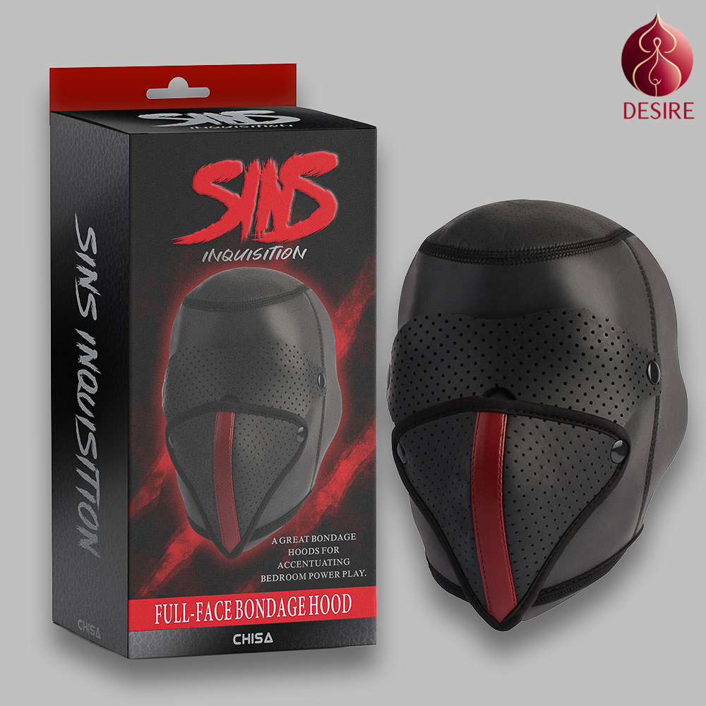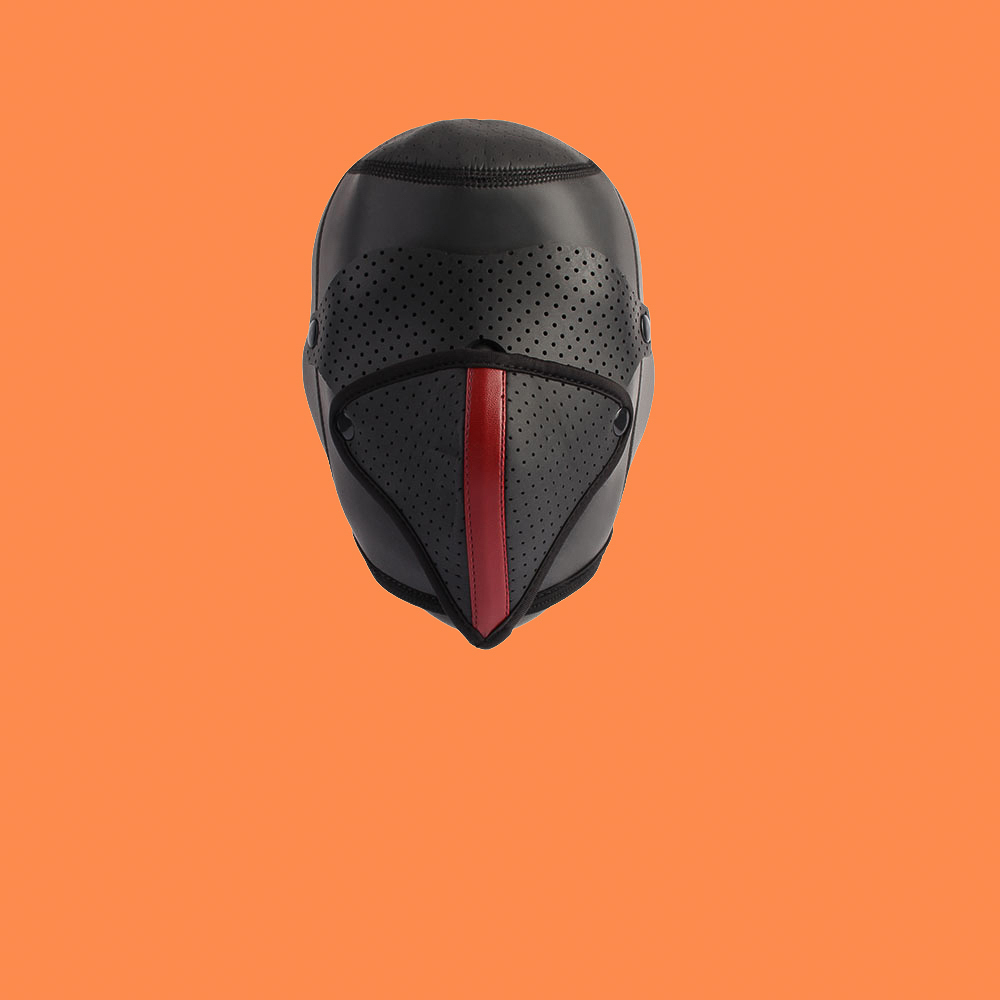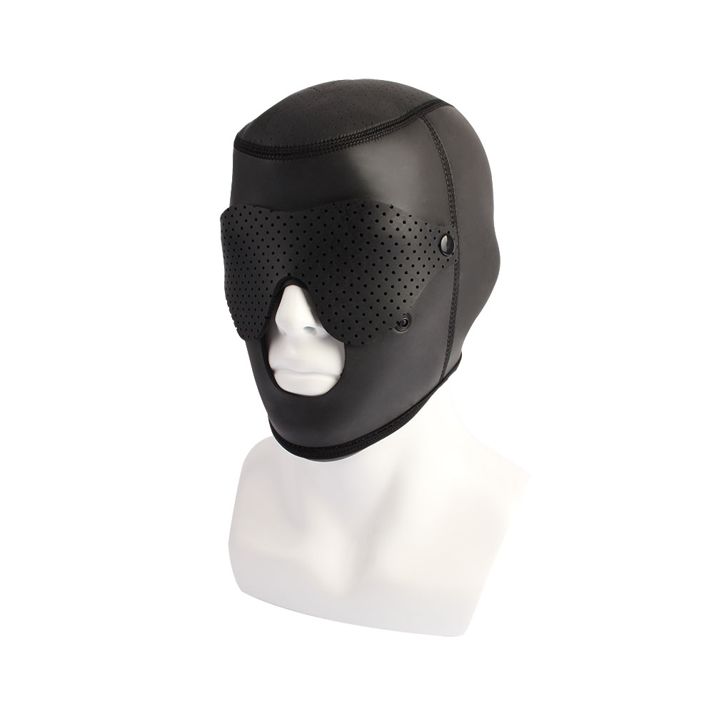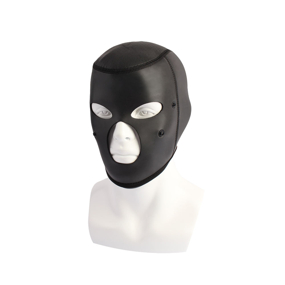 • Full-face bondage hood designed for sensory deprivation